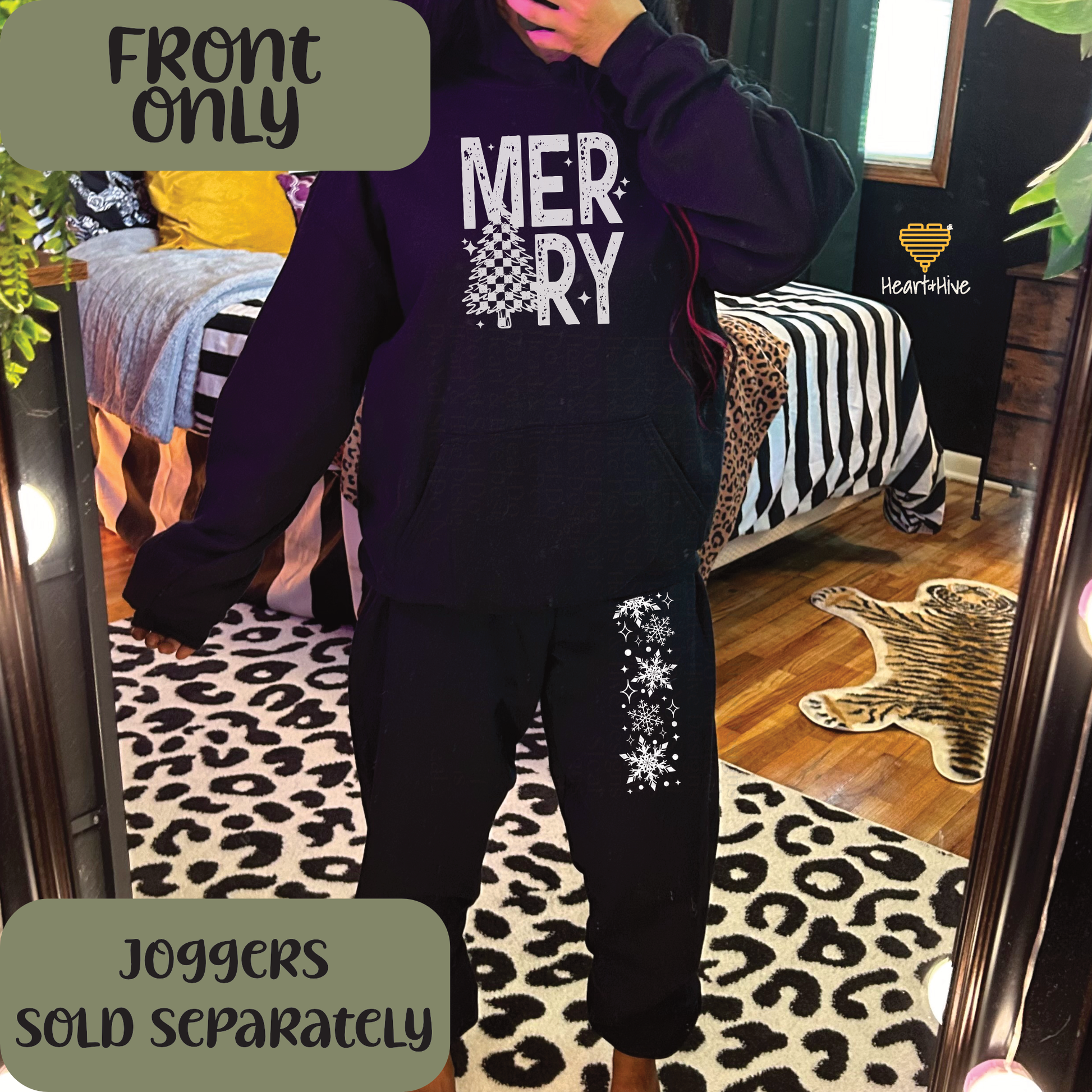 Merry Checkered Christmas Tree // Optional Snowflake Sleeves // BLACK